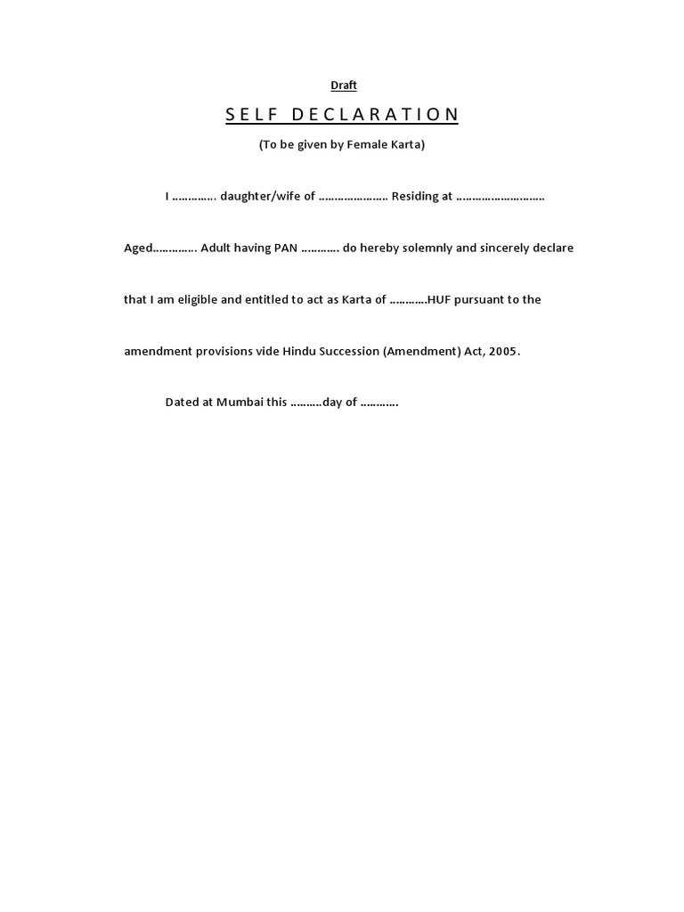 Declaration of Female Karta in HUF PDF